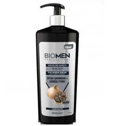 شامپو ضد ریزش بیومن حاوی عصاره سیر سیاه و یون نقره مناسب انواع مو،ترکیه 1000 میل