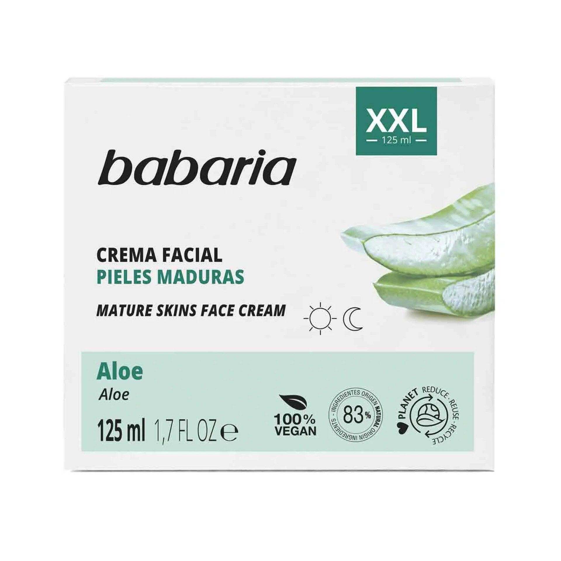 کرم مرطوب کننده و آبرسان صورت باباریا babaria مدل آلوورا XXL حاوی عصاره آلوورا خالص،اسپانیا حجم 125 میل