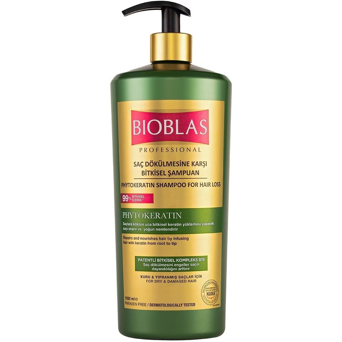 شامپو ضد ریزش بیوبلاس سبز مدل PHYTOKERATIN مناسب انواع مو با فرمولی گیاهی و غنی از ویتامین و پروتئین موها را تقویت کرده و از ریزش آن ها جلوگیری می کند. یکی از راه های درمان ریزش موها استفاده از ایین محصول است. مدل PHYTOKERATIN محصولی موثر برای کنترل ریزش موهاست که به لطف مواد گیاهی به کار رفته در فرمولاسیون آن، سبب تقویت ریشه موها می شود.