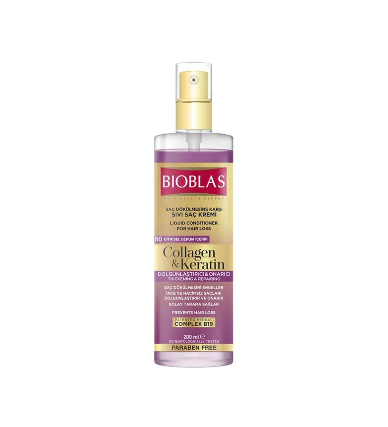 اسپری نرم کننده و ضد ریزش مو بیوبلاس حاوی کلاژن و کراتین مناسب موهای نازک 200 میل