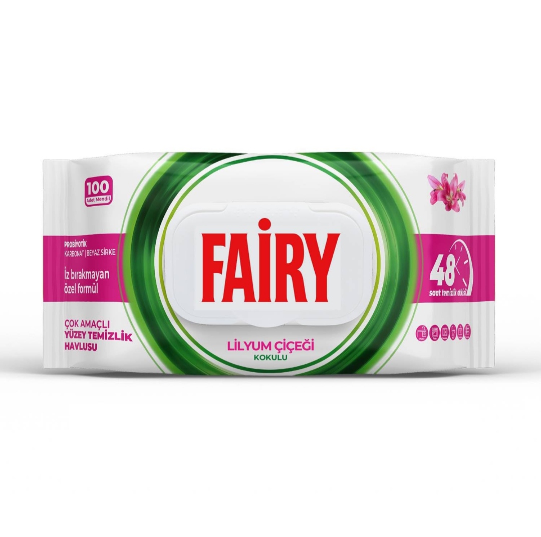دستمال مرطوب تمیز کننده سطوح فیری Fairy رایحه گل لیلیوم،ترکیه بسته 100 عددی