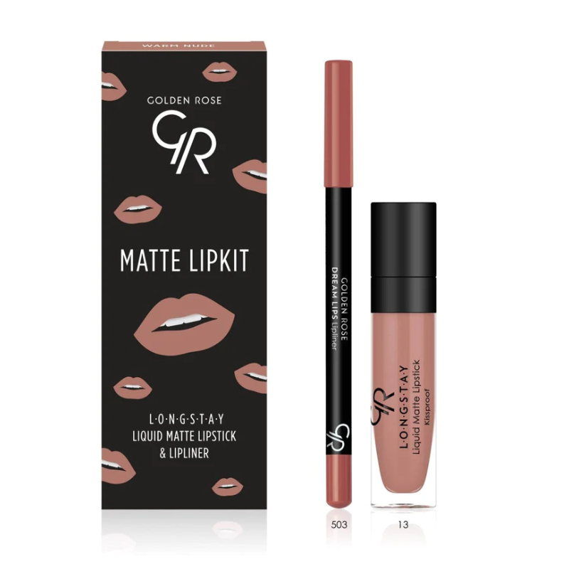 كيت رژلب مايع و مداد لب مات گلدن رز Warm Nude،ترکیه