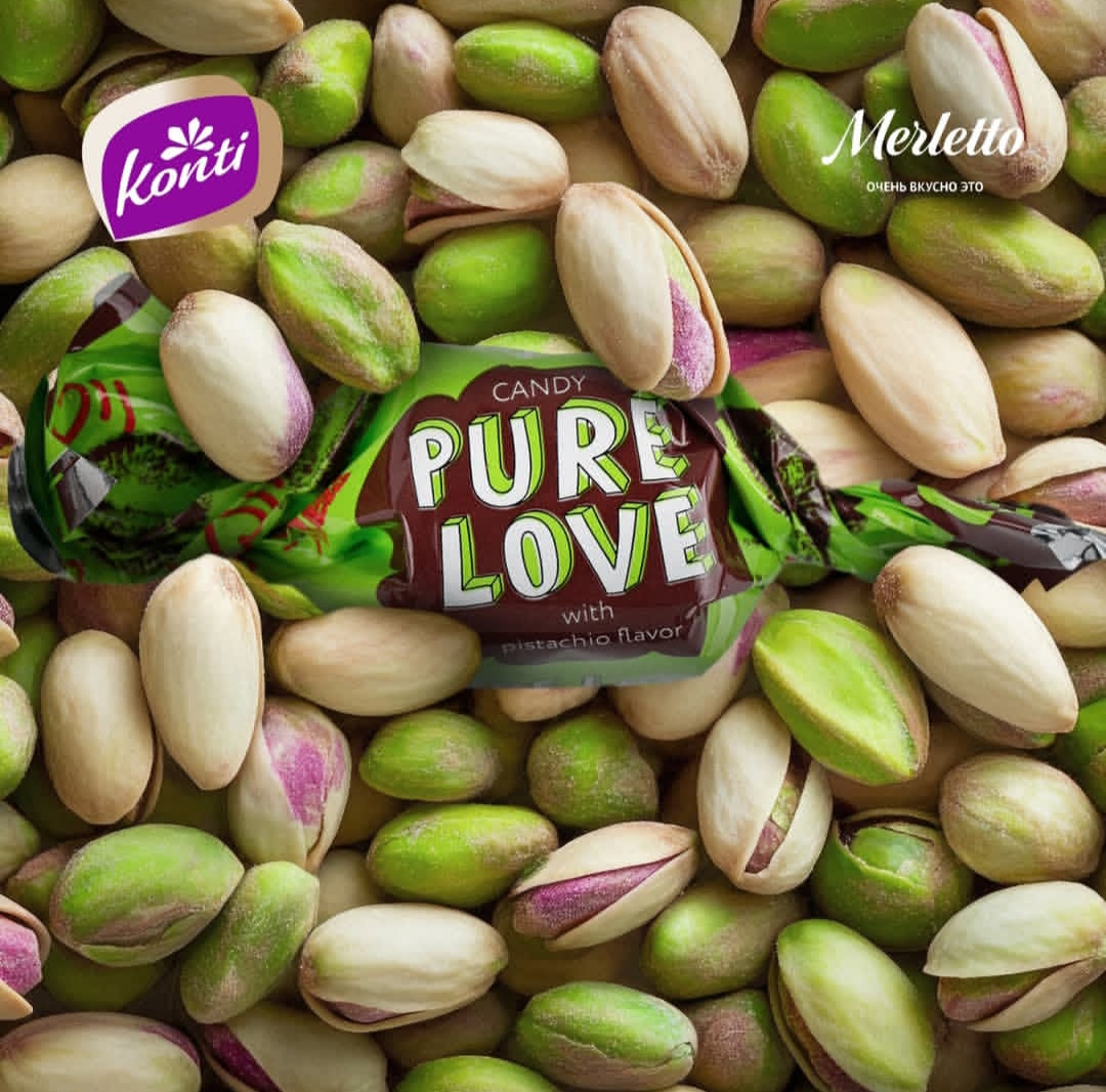 شکلات کنتی Konti PURE LOVE با مغز ترد و طعم کارامل و پسته ، روسیه 1 کیلو