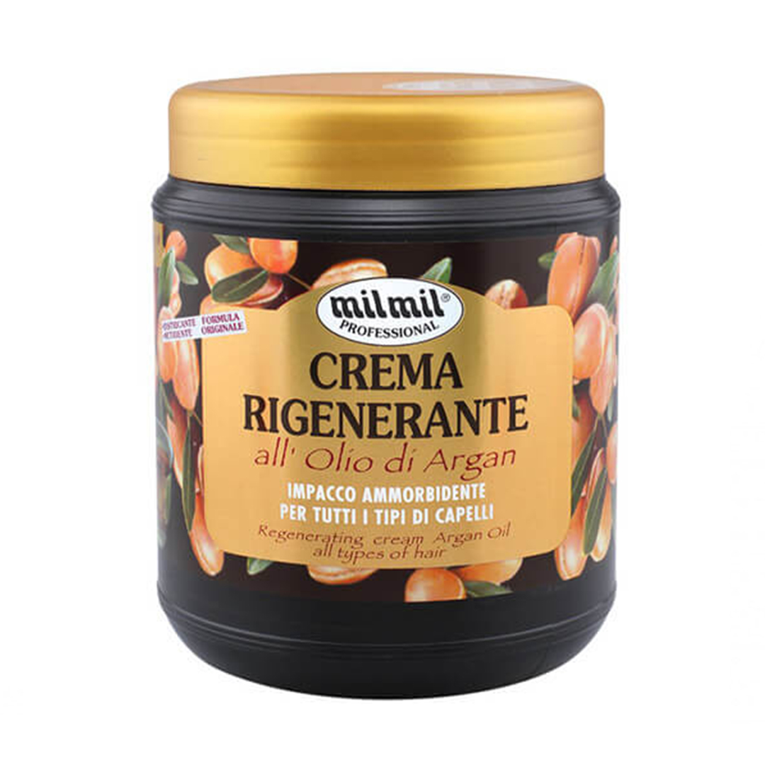 ماسک مو بازسازی کننده روغن آرگان میل میل با ترکیبی غنی از روغن آرگان عمل احیا و بازسازی را بر روی ساختار مو انجام داده و در برابر آسیب های محیطی لایه محافظتی ایجاد میکند. کرم بازسازی کننده مو لطافت و درخشش را به موها باز گردانیده، و موهایی نرم و براق را تحویل شما میدهد. وجود عصاره روغن آرگان در ترکیبات ماسک مو باعث بازسازی ساختار مو از ریشه تا نوک مو میشود. در ضمن ماسک مو روغن آرگان میل میل ساخت کشور ایتالیا و حجم 1000 میل روانه بازار گردیده است.