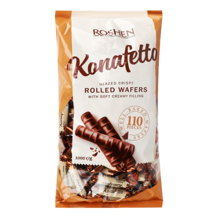 ویفر رولی روشن کنافتتو konafetto مغز شیری روکش شکلاتی بسته 1 کیلویی،اوکراین