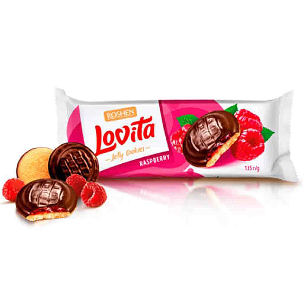 کوکی ژله ای لاویتا ROSHEN با طعم تمشک و روکش شکلات،اوکراین 135 گرم