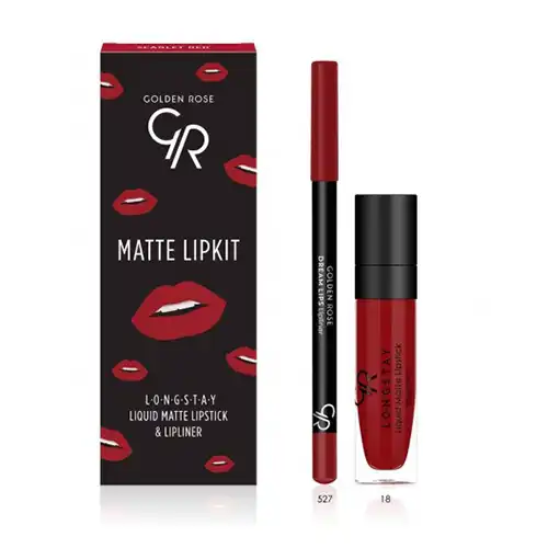 كيت رژلب مايع و مداد لب مات گلدن رز Scarlet red،ترکیه